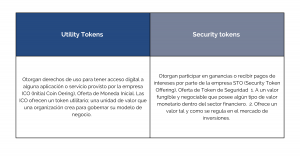 Además de la categorización de tokens fungibles y no fungibles, existen la categorización de tokens de utilidad (utility tokens) y tokens de seguridad (security tokens).