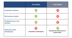 Hay dos tipos de wallets: los “hot wallet” y los “cold wallet”.